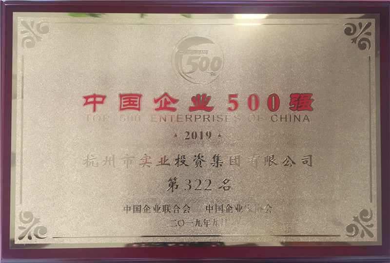 2019年“中国企业500强”排名第322位